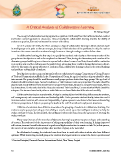 A Critical Analysis of Collaborative Learning Dr. Manjit Singh* Te concept of collaborative learning represents a signifcant ‘shift away’ from the traditional teacher-centred and lecture-centred approach in classrooms. Hence, broadly, the collaborative learning involves the ability of students to question, learn and understand in concert with others. In CCE scheme of CBSE, the Peer Learning is a type of collaborative learning in which students work in small groups or in pairs to discuss concepts, lectures, or fnd solutions of the problems. In this, the teacher introduces the course material to students through lectures or through readings or videos before class. In collaborative learning, the frst step is to specify the academic task clearly so that every member of the group knows the objective or task to be completed or discussed. Ten, during the discussions, each member of the discussion group should be given a chance to express his/her ideas. In case of conficts, these should be resolved as soon as they arise and the students must be guided about preventing these conficts during discussions in future. After the discussion, the group will arrive at a solution. Tus, collaborative learning enhances the critical thinking and problem- solving skills of students. Broadly, there are three main conditions for efective collaborative learning: Composition of Group, Features of Task and Communication Media. In the Composition of Group, the age, level and size of group should be taken into account. Te group should be small because small groups perform better than large groups. Te age level of students should be almost same. Second condition, i.e. Task Features is also very important. Te tasks should be planned and clearly defned. Tese should not be computer-based tasks, because in computer based tasks, there is less interactions. So the tasks should be discussion oriented. Tird condition, Communication Media should be adequate. Te internet based tools, video or audio links or text based links should be selected carefully. Collaborative learning has many benefts. It helps in creating higher-level thinking skills among the students, self-management, oral communication and leadership skills. It also promotes student-faculty interaction and it increases student retention, self-esteem and responsibility. It gives exposure to students and increases understanding of diverse perspectives. It helps in preparing the students for real life social and employment situations. Diferent educationists have diferent views about the grouping of students in collaborative learning. Te students may be grouped according to their ability, or may be mixed up so that intelligent students can help the weaker students to learn. In this method, the intelligent students also learn from the experience of tutoring the weaker students. Many researchers are of the view that collaborative learning has positive impacts on deeper understanding of content. Te students feel the importance of taking responsibility of their own learning. It brings improved self-esteem, increased overall achievement in grades and higher motivation to remain on task. So, in this process, the success of one member of group helps other member of group to be successful. In collaborative learning, the students learn about how to work with other students who have diferent opinions. While interacting in small groups, the students fnd opportunities to answer the diverse questions and * Director/Principal, Dasmesh Parivar International School, Tarn Taran, Punjab 12 Collaborative Learning