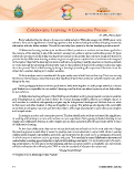 Collaborative Learning: A Constructive Process Dr. (Mrs.) Neeru Joshi* Every individual has the talent to become successful and great. With this unique idea CBSE wants every school to focus on the signifcance of working together so that students develop the ability of inquiry, interaction, elaboration with the fellow students. Tis will for sure help them sustain in the fast developing modern world. Collaborative learning involves joint intellectual efort by students or teachers and students together but the outcome of this learning is also child-centred. Learning is an active as well as constructive process. At times students do not want to study or skip very important concept on the premise that concept is tough and they fail to perceive but by collaborative learning students are given enough space to explore them as teachers are the vanguard of this system. Tey shift the learning from lecture method to connecting to real life situations or introduce students to course material via interesting and innovative ways so that students do not feel the pressure rather, they enjoy the entire process. Tis is called learning by doing or learning by involving all components. Education is not the subject but a medium helping us to explore ourselves. Unfortunately, we restrict ourselves with the given study material and this is not learning. Tis is memorizing the facts or rote learning as actual learning is that easy fow of water that carries not only the mud, but also other things in the way. In this pedagogy students at various performance levels work together in small groups towards a common goal. Students are responsible for one another’s learning as well as their own where by success of one helps others be successful too. Collaborative learning enhances critical thinking and students work in groups toward a common academic goal. If small groups are made in class to dissect the concept, learning would be efective as it will give chance to each member to contribute subsequently and pave way for interpersonal development. Students learn to relate to their peers and other students as they work together in a group. Tis technique also develops the social skills in students as each group can create products that refect a wide range of perspectives and is thus more complete and comprehensive. Learning is an active and constructive process. Teachers should make students understand the signifcance of working and learning in a team and teachers can even experiment this by giving individual learning in one chapter and collaborative learning in other chapter and can have assessment after this and result will be in favor of collaborative learning. At their best collaborative class rooms motivate both students and teachers. In the most authentic of ways, this learning process models what it means to question, learn and understand in concert with others. Learning collaboratively demands responsibility, persistence and sensitivity but the result can be a community of learners in which everyone is welcome to join, participate and grow. “It is wonderful to create Collaborative classrooms and undoubtedly a rewarding opportunity but it is infested with challenges and myths”. It is my humble urge to the teach- ing communities to be very sincere in their planning, and then execution could be a remarkable one and students will be beneftted and the eforts by the CBSE to raise the standard of education be truly served. “TEAM TOGETHER” * Principal, B.B.P.S, Modinagar, Uttar Pradesh 14 Collaborative Learning