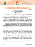 Role of a Teacher in Collaborative Learning Rosy Jain* “It is long history of human kind, those of who learned to collaborate and improvise most efectively has prevailed” - Charles Darwin In order to visualize the concepts already introduced in class and to reinforce learning through group collaboration, the Mathematics teacher takes students of class IX outside for a geometry lesson, A team of three students started constructing an equilateral triangle, after which they construct two parallel lines and a triangle circumscribed by a circle. One student holds the rope from the place of a vertex of the triangle while the other two slowly move in a circle, using rope as a giant compass to mark the other points of the triangle. “Excellent work, champs” the teacher says, nodding her approval. So instead of considering herself as a teacher, as keeper and dispenser of disciplinary expertise and bound up in the lecture podium; she acts as facilitator, co-creator of knowledge and collaborator. She let her students construct their own learning based on their experience. In collaborative scenario, there is no ofcer above the learners where everyone shares an equal footing and learner choose their own unique path. Collaborative learning shifts the responsibility of learning to students as researchers and self-directed learners. Another Maths teacher divides the class in groups and his students can be seen asking unraveling problems of mathematics and explaining each other before asking him. So students learn to rely on their collective wisdom. Te daily class worksheets and periodic group tests are intentionally designed to be harder than the individual homework or exam. Students quickly come to recognize their ability to solve things as a group which they might not have been able to do on their own. Proponents of collaborative learning claim that the active exchange of ideas within small groups not only increases interest among participants but also promotes critical thinking. In Language classes students can be encouraged to listen to each others individual interpretation of the text, underline the notion that there can be multiple right answers. It empowers and enables students' resilience to observe how your neighbour can act as a resource, how do you test your own theories, how to understand if you are on the right track or the wrong. Students become more proactive when they go in to the real world, they already know how to work with people and how to draw out their strength. In collaborative learning, the teacher acts more as organizer, facilitator and mediator than a transmitter of knowledge. 90% of class time should be spent on application of content and 10% on delivery of content. Teachers must act as connector of learning frst and content expert later. Tey should be learning guides bringing their experience and expertise to bear much like" wilderness guides "who help hikers and explores. An analogy for the st new role of teachers in 21 century is as a ‘Sherpa’ ± experts in their felds who guide others on the journey of self discovery. * Principal, Shifaly International School, Rahon Road, Ludhiana, Punjab 26 Collaborative Learning