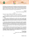 will enable them to excel and emerge successful in real life situations of work and life. Te fscal competitiveness of a country depends on the skills of its work force. Te skilfulness and profciency of the work force, in turn, are reliant upon the quality of the country's education and training systems. Schools, therefore, should prepare and supply future workers with appropriate knowledge and expertise to augment their productivity and, therefore, promote economic growth. Our mission should be to strive for the strong foundation of young learners, which will facilitate them to become active participants in life-long learning and earning…!!! K.C. Garg Chairman, Rukmini Devi Public School, Pitampura, Delhi Cooperative Learning: An Educational Paradigm of 21st Century Relevance Te ability to collaborate is becoming more and more important in today‘s world in which tasks are getting more and more interdisciplinary and complicated to accomplish. It is therefore essential to prepare students on collaborative tasks while they are in schools so that they can become competent team workers when they enter the workforce. Inevitably, cooperation and collaboration seem to overlap, but in the cooperative model of learning, the teacher still controls most of what is going on in the class, even if the students are working in groups. Collaborative learning, on the other hand, is aimed at getting the students to take almost full responsibility for working together, building knowledge together, changing and evolving together and of course, improving together. It is not that one approach is better than the other. It is that they should be understood as two diferent approaches. What must be recognised is that the approach must ft the learning context it is being applied to. Inevitably, what will determine the best approach will depend upon the level of preparation and skills of the students and teachers involved. It is our understanding that teachers interested in setting up collaborative projects are interested in working towards student autonomy and self-directed learning. Teachers and/or students may not be prepared or have the ideal conditions to set up a collaborative learning project right away, but it can be seen as a goal to strive for. A concerted efort has been made by Central Board of Secondary Education, Delhi, in its curricula, through the efective implementation of CCE [Continuous Comprehensive Evaluation] or more meaningfully Child Centric Education (CCE), to ensure that our children are prepared with the skills of collaborative team work, peer tutoring, shared knowledge, critical thinking leading to innovative thinking, with the web.2.0 tools and education st 3.0 methodologies. Collaborative learning is the new educational paradigm of the 21 Century which however th could not fnd its true relevance in the late 20 Century. Lalit Krishan Trivedi Director (VISTA) Vidya Sagar Trivedi Academy, Kashipur, Uttarakhand 42 Collaborative Learning